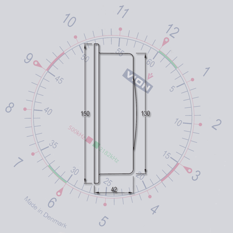 The VION series has a recognizable design. Blue and red hands and pointers are used in all instruments and blue and red printing on the dials. The drop-shaped symbol is a recurring feature.